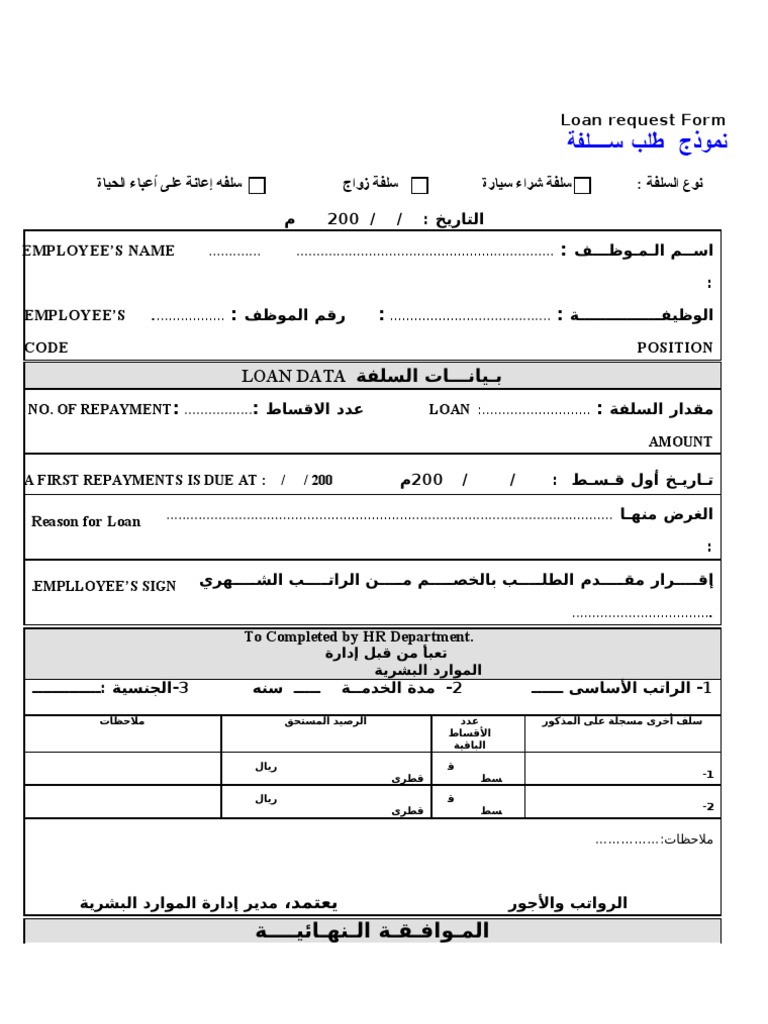 نموذج طلب سلفة راتبloan Request Form
